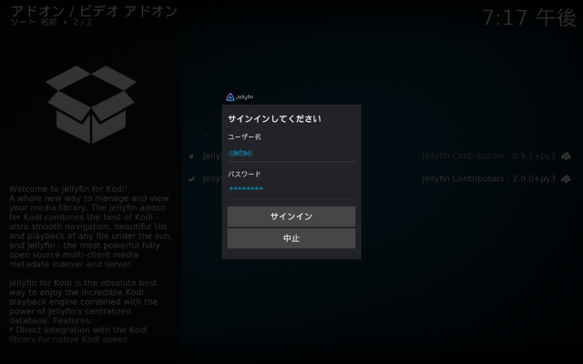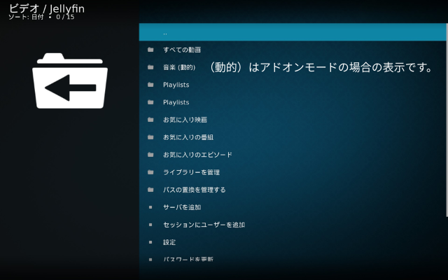 この記事はhttps://jellyfin.org/docs/general/clients/kodi/を元に作成しました。ネイティブモードやJellyconについても記載されているので参照してください。Jellyconは複数のサーバーやユーザーがいる場合に切り替えができて便利なようです。