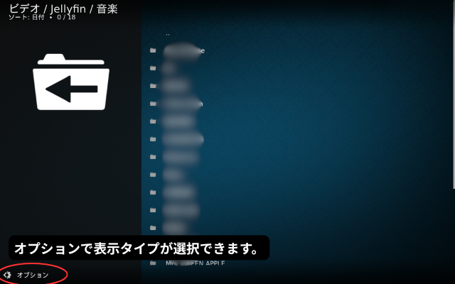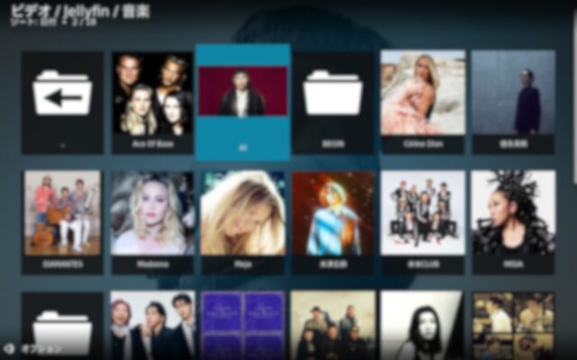 ビデオアドオン(あるいはミュージック)を開くとJellyfinアドオンがあるので、選ぶとフォルダがリスト化されている。収められた動画をリモートで再生・停止・早送りなどができる。