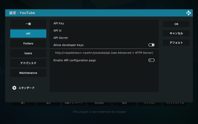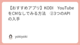 最後の設定、YouTubeアドオンのインストール・設定です。YouTubeアドオンのインストールして、3つのAPIを入力、サインインする流れになります。iphone⇔KODI⇔PCとあちこち移動しないといけませんが、さほど難しい作業ではありません。この設定が終われば、CMなしのYouTubeが見られます。