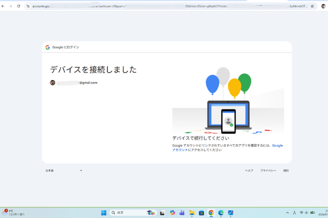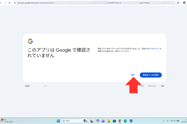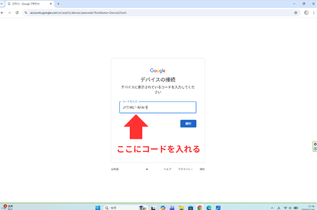 1つ目を許可したら、再度入力画面に戻る。同じようにコードを入力する。