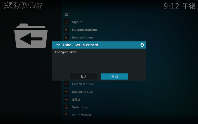 YouTubeを開きます。セットアップウィザードが設定するか聞かれますがここは「いいえ」で、後で設定します。