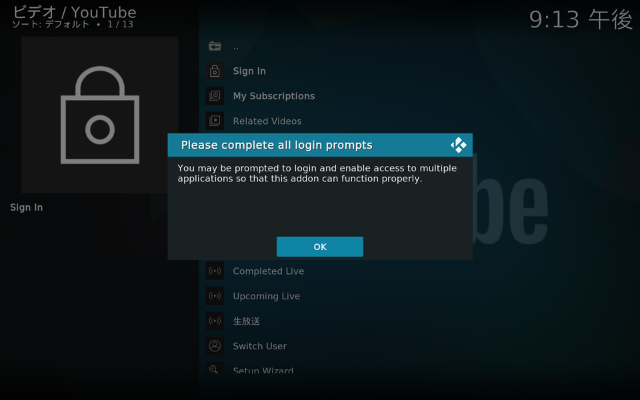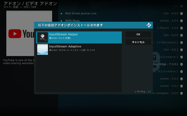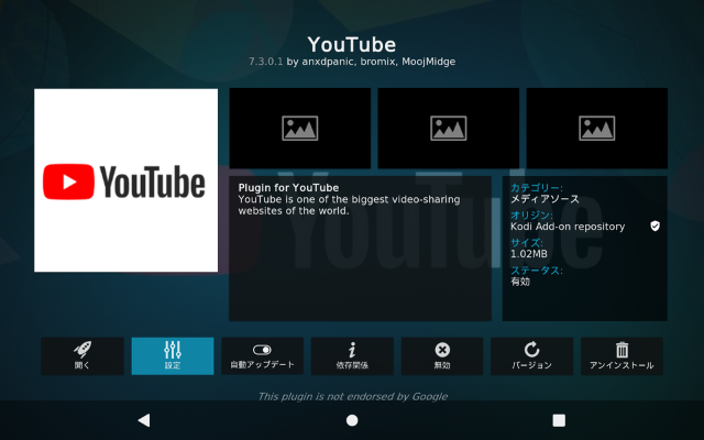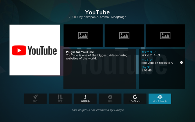 YouTubeアドオンをインストール