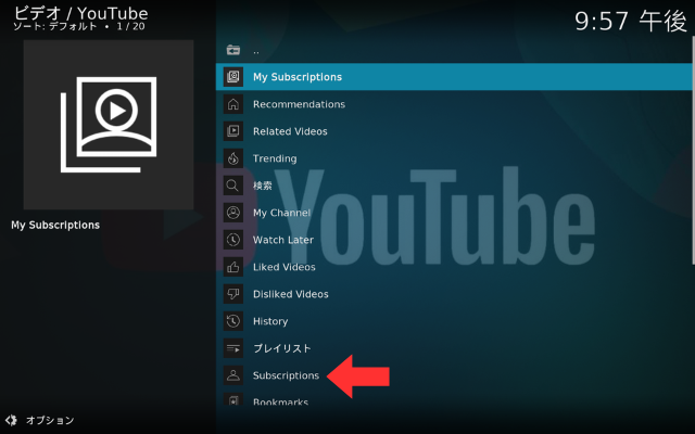 これで、KODIでYouTubeをCMなしでみられるようになりました。「Subscriptions」(登録チャンネル)を開いて確認してください。