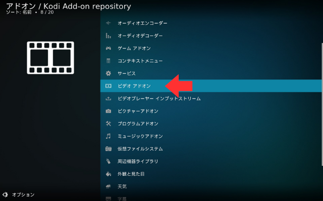 リポジトリからインストール→ビデオアドオンを選択。