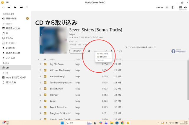 CDの曲を取り込む(Music Center for PC)